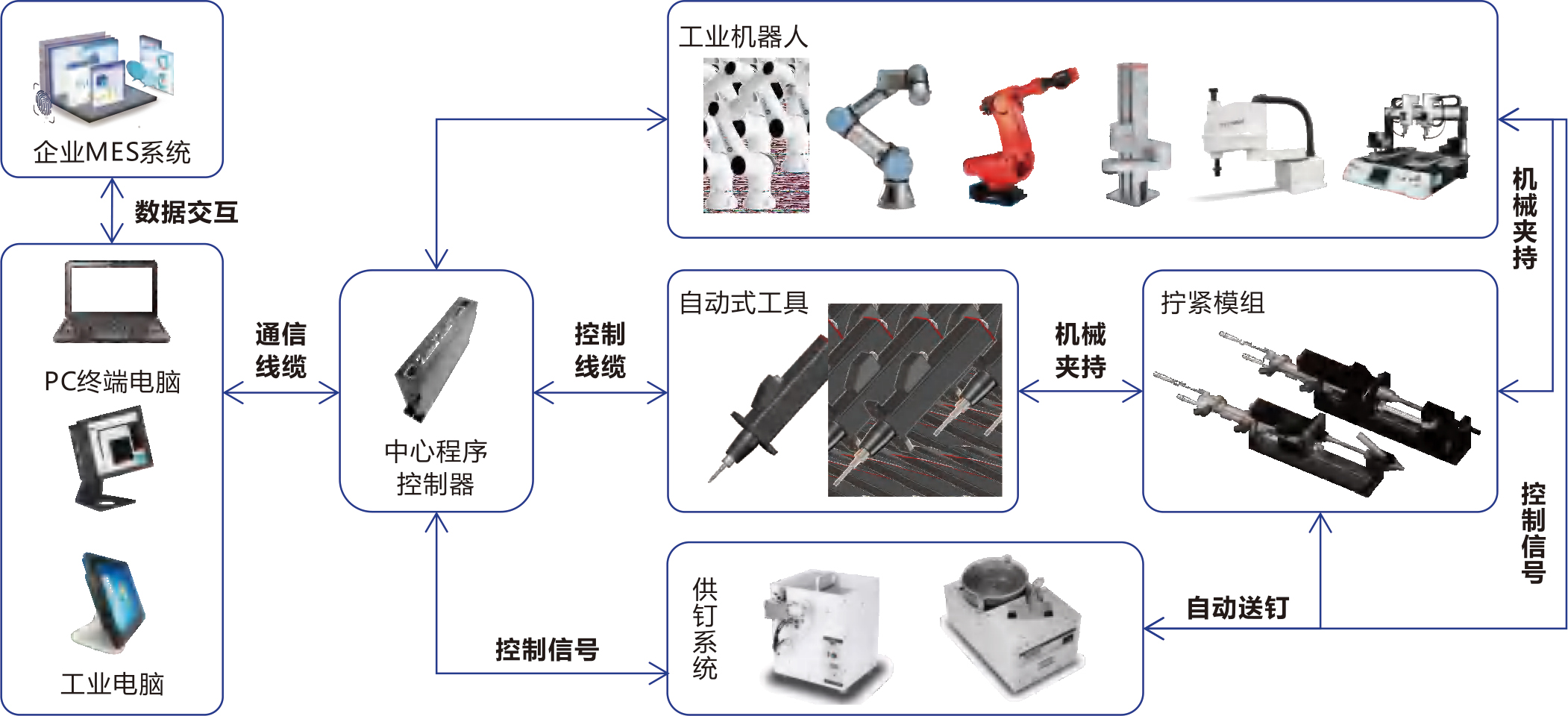 2、自动化装配解决方案方案可以包含自动拧紧系统、自动供料系统、机器人系统以及视觉定位系统等。其中,亮普自动式拧紧系统拥有高精度、高稳定性、体积小、重量轻等优势,并支持多种工业标准通信协议,可与自动化系统进行信号及作业数据的即时交互,方案可快速落地。