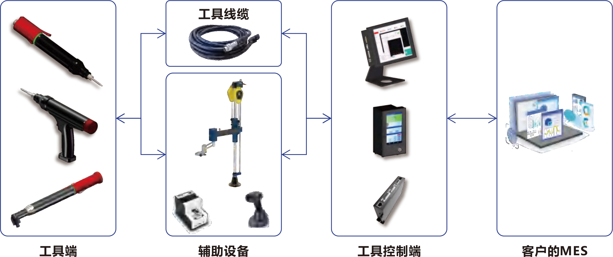 1、智能手持工作站解决方案方案主要由智能工具本体、通信线缆、工具控制器以及客户MES系统等组成,同时,方案支持外接扫码枪、信号灯、供料器等设备,可以实现高精度、高质量、高效率的数字化生产作业,以及快速任务切换、信息绑定、防错防呆、任务报警、高效作业等功能。